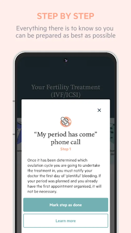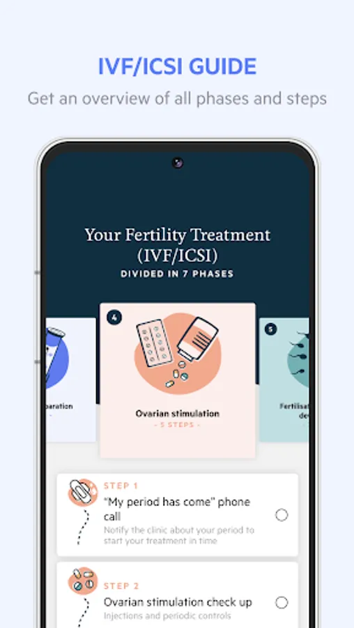With our treatment feature we help you navigating your IVF/ICSI treatment. Be informed about the individual steps, and check them along the way.