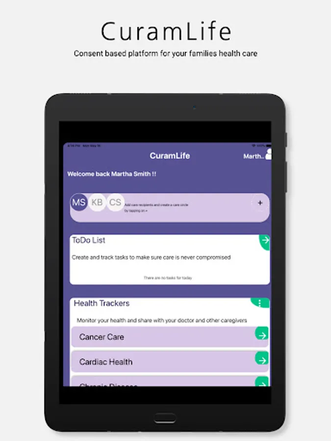 Your data is stored in the CuramLife App and is available for your caregivers who you can authorize using the Consent Manager. Only you can decide who has access to it and can revoke the access at any time.