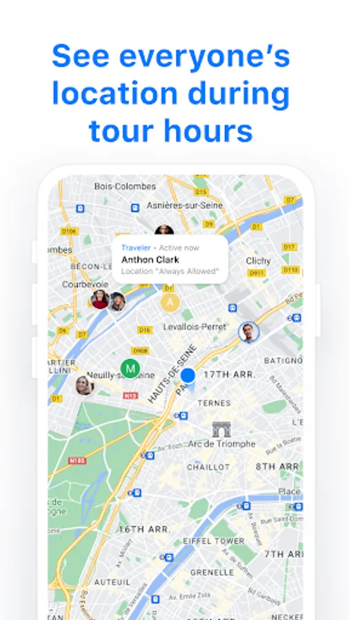 SEE EVERYONE'S LOCATION DURING TOUR HOURS: