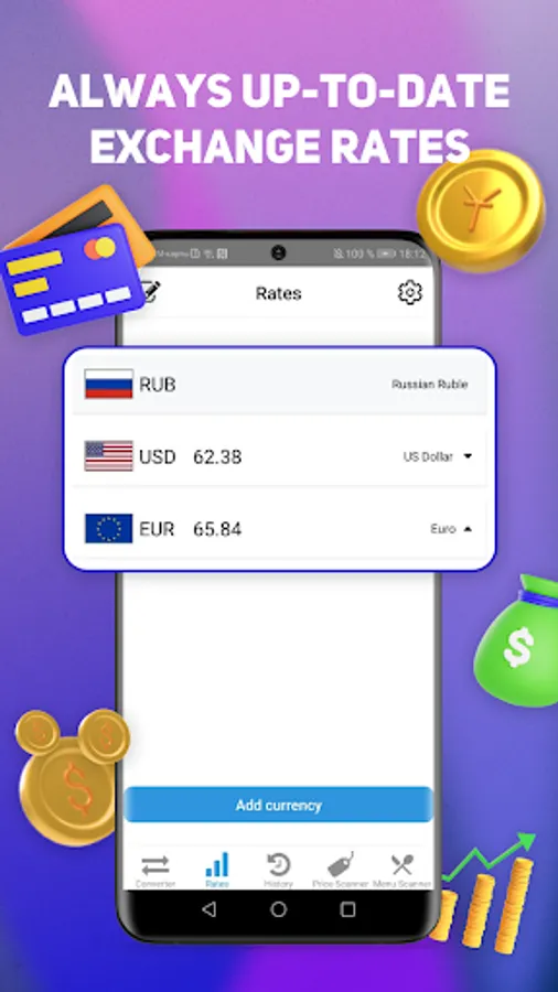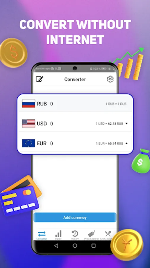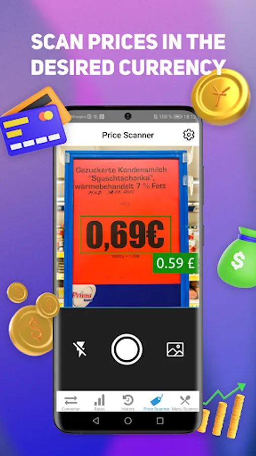A simple and convenient CurCovn currency converter that can scan price tags in the store and convert to the desired currency