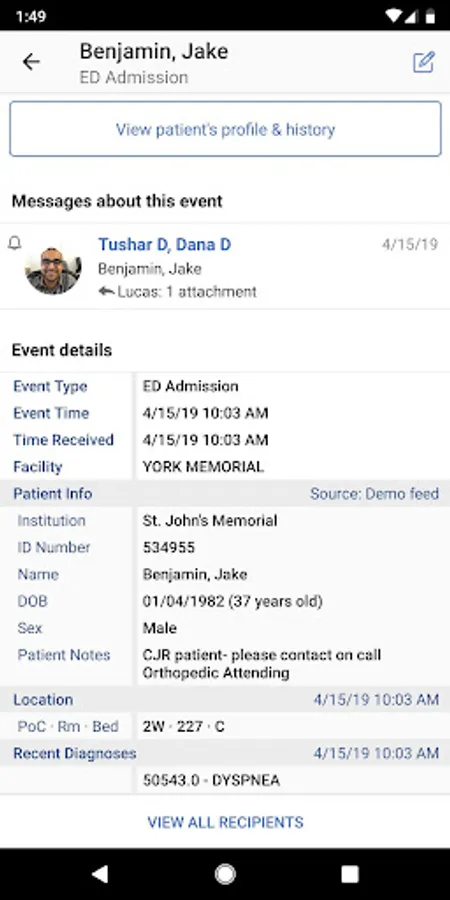 -Send secure, HIPAA-compliant messages to other users with a smartphone