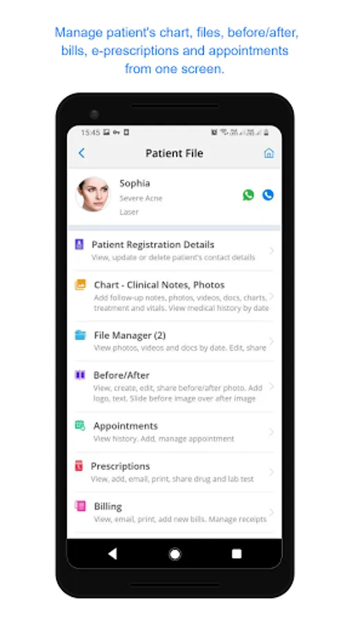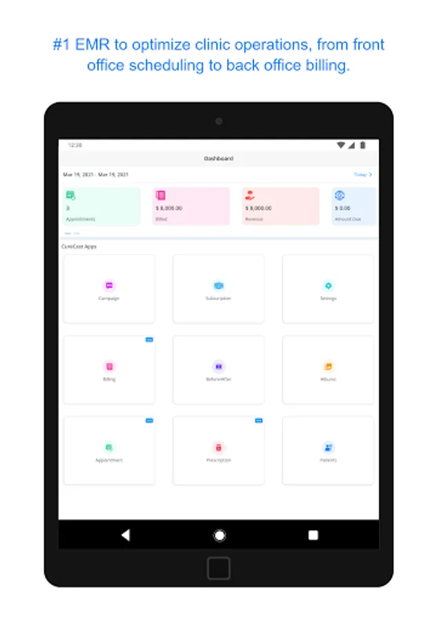 CureCast EMR, EHR and Practice Management Software is a state of the art Electronic Medical Record or EMR app for specialty physicians who needs to keep online track of patient’s clinical notes, charts, medical billing, pictures & before after. CureCast’s play store android application offers an unparalleled mobile EMR, EHR or practice management software experience. Anytime, anywhere access from your android phone, pc, mac, desktop, laptop, iPhone or iPad device adds an additional layer of mobility and efficiency to your practice routine.