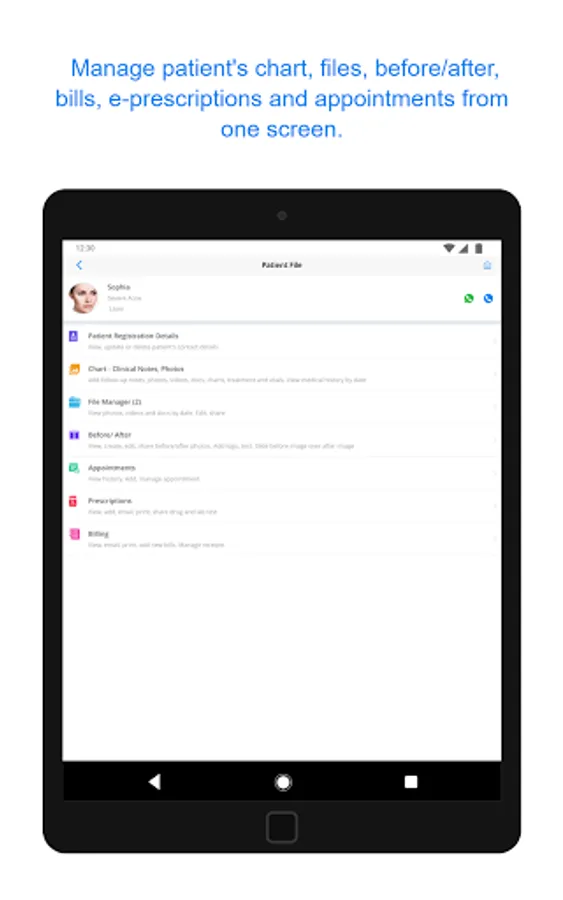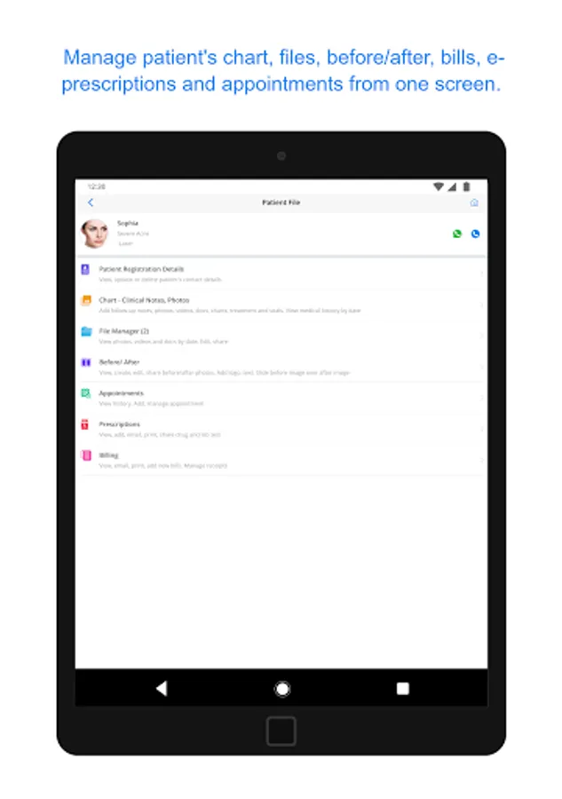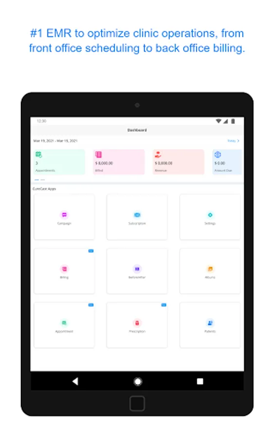 At first sight, doctors can view patients for the day, go over charts, clinical notes, pictures, videos and medical billing. Doctors can also thumb through patient chart notes and review important information in a convenient manner. With CureCast’s android app, you can document with confidence, knowing it has the technological backbone of one of the most widely used specialty-specific EMRs in the industry.