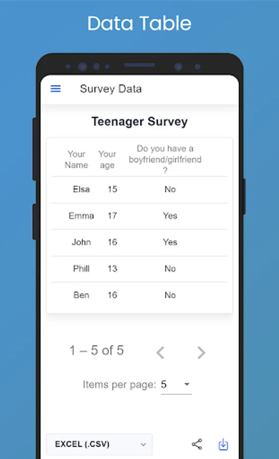 You can then generate a table containing all the data entered, exportable to .csv files.