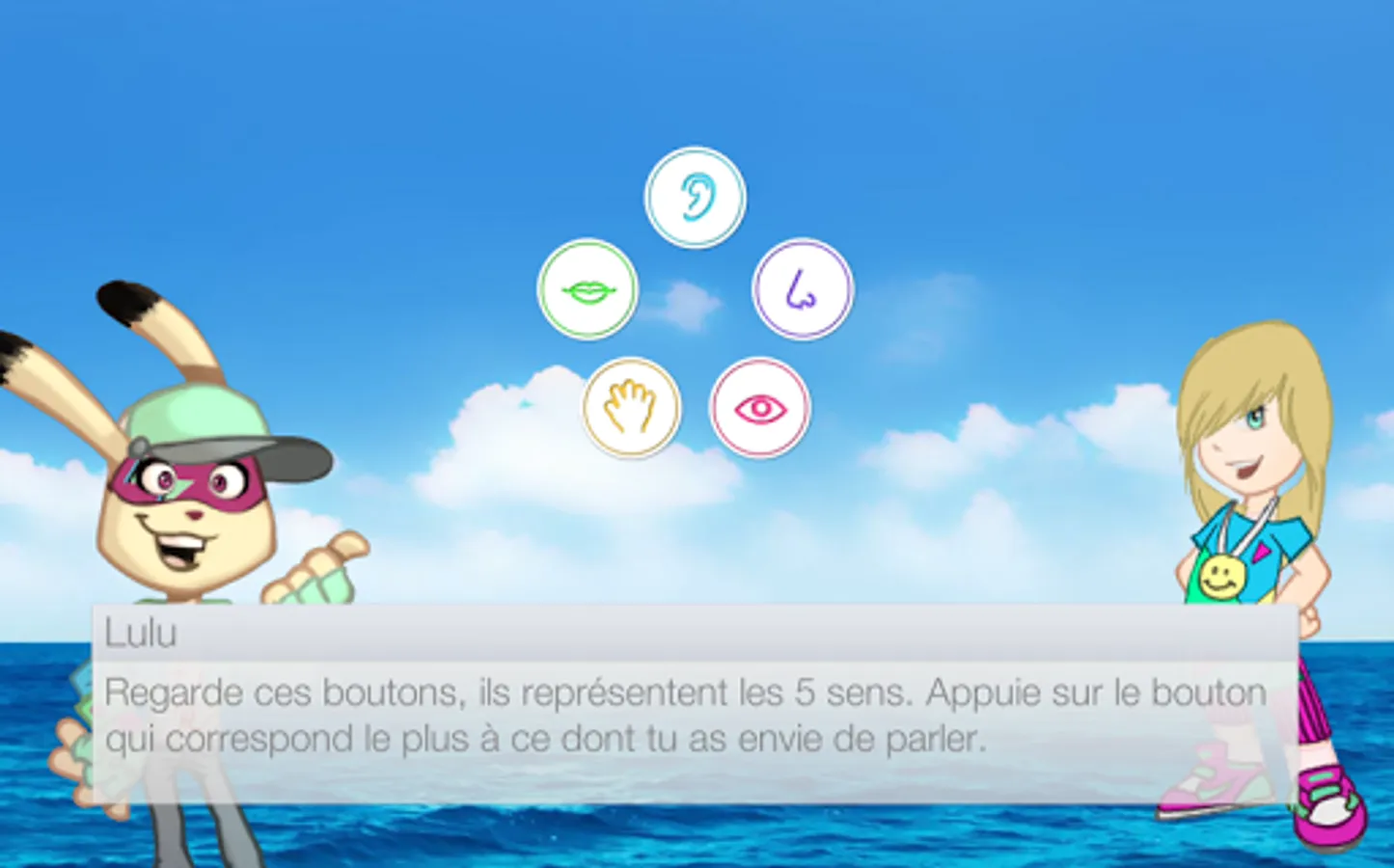 Vision, hearing, touch, smell, taste… MHASC explores all the sensory modalities of hallucinations with dedicated environments. Simple, smooth and gaming, the interface promotes the child’s autonomy. A custom avatar moves into interactive sceneries with the help of Lulu, confidant of the adventure.