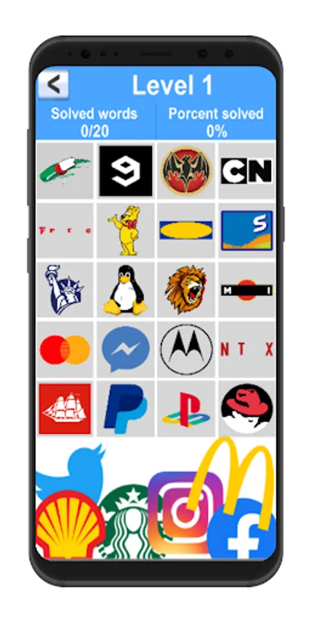 In our logo quiz game you will find 5 Levels. Available only in our game & all for free!