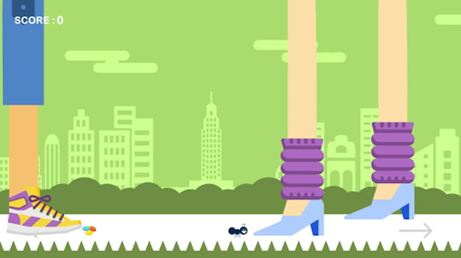 Welcome to "Ant Survival" - a thrilling game where you play as an ant trying to avoid being crushed by humans with different types of shoes. Your goal is to survive for as long as possible and score as many points as you can.