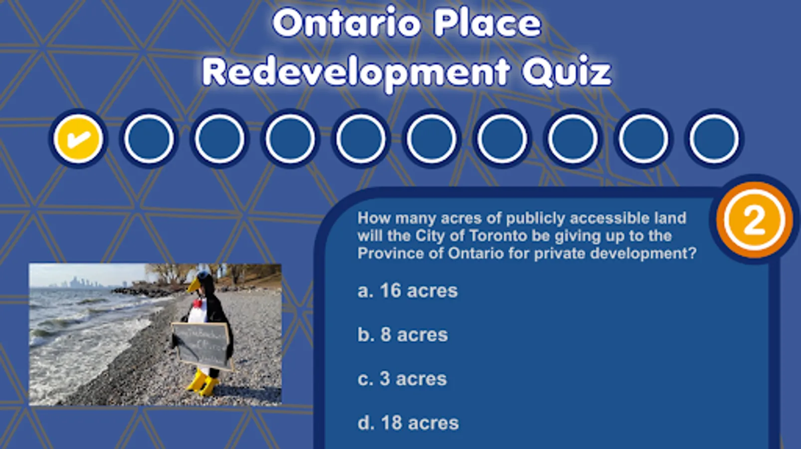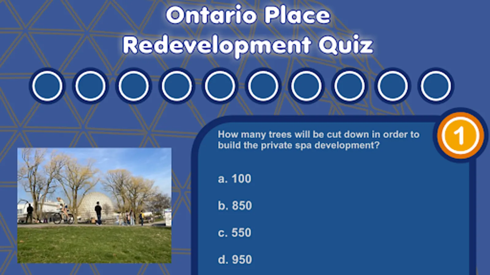 Whether you're a local Torontonian or just interested in urban development, this quiz app is a great way to learn about the Ontario Place redevelopment plans. So why not test your knowledge and challenge your friends to see who knows the most about this exciting project?