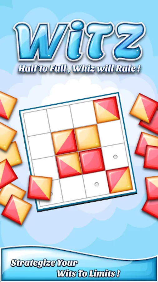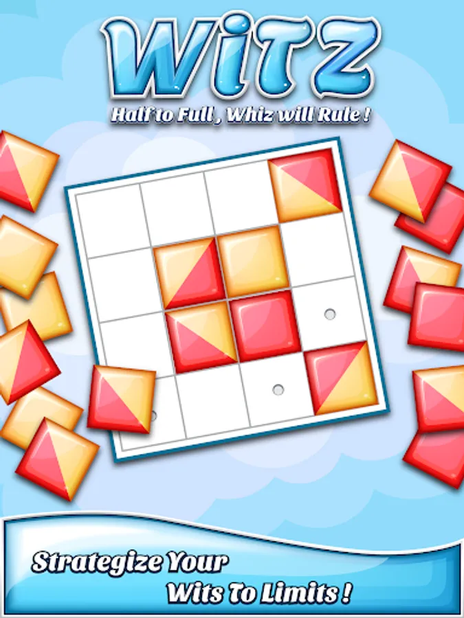 WiTZ - HALF TO FULL, WHIZ WILL RULE! - is a smart reinvention of Reversi. Playing with a set of four 2-color square discs makes this familiar game tough to master