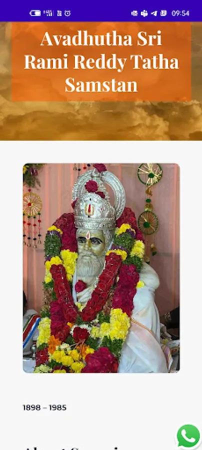 Avadhuta, the word itself enlightens our souls. It is very difficult to describe an Avadhuta as they constantly rest in themselves. They have crossed the barrier of caste, creed, worldly concerns, and bodily pleasures. They are the ocean of knowledge and love, beyond senses and very pure. They are boundless, formless, selfless, and dispassionate. They are also free from birth or death, virtue or sin, righteous or unrighteous, holy or unholy. They do not need connection or distraction as they union with god and are always at a state of bliss. They come on earth to uplift the life of people and to establish dharma. Their deep love for their devotees is indescribable and it is impossible for us to understand their deeds. Everything they do, everything they speak has a great meaning embedded in it. They command the five elements & asta siddhis. They protect devotees, destroy their sins, take away their karma, show them the correct path, and lead them towards renunciation so that devotees can attain salvation. Our Sri Rami Reddy Tatha completely possesses all these qualities. It is believed that Sri Ramavadhuta is an incarnation of Lord Dattatreya.