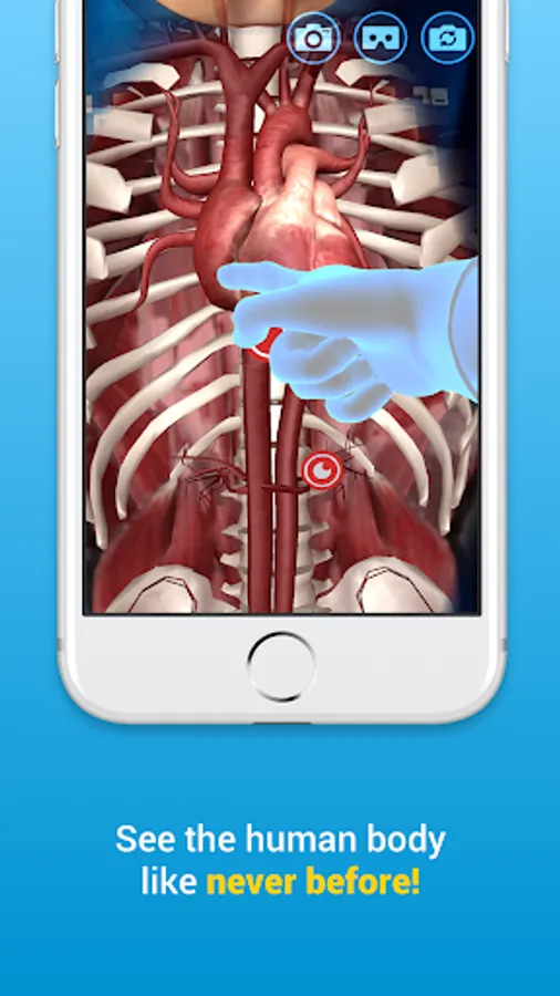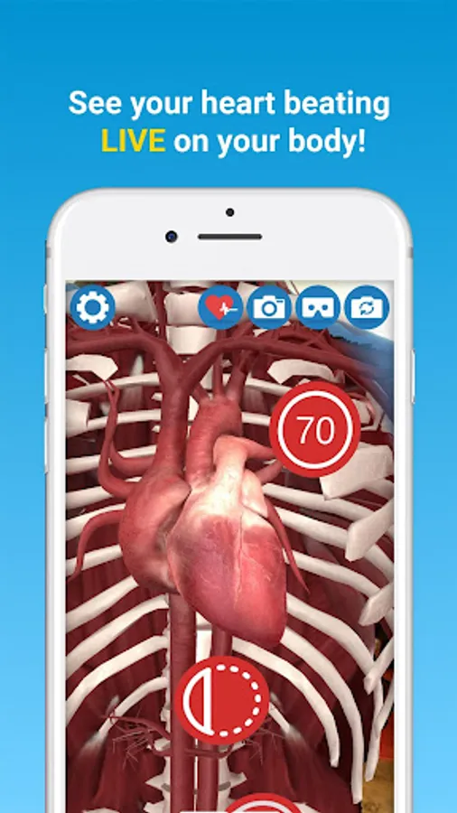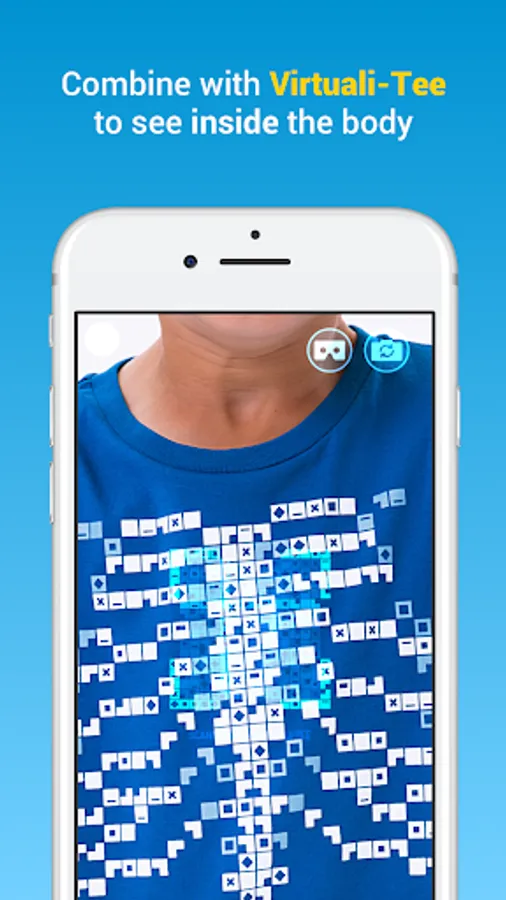 The app works in conjunction with our augmented reality t-shirt to bring learning to life with an experience that's unlike anything else. Unlock a detailed and realistic simulation of the anatomy by pointing your iPhone or iPad at The Virtuali-Tee. It works in selfie mode too!