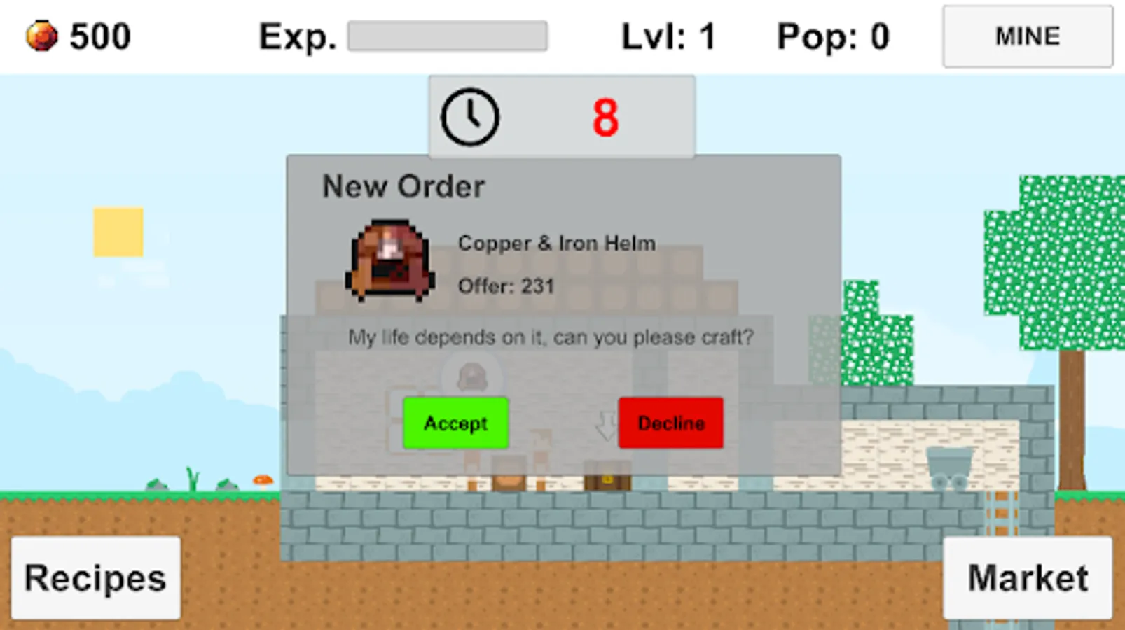 Your goal in the game is to gain customer satisfaction by taking orders from the customers who come to the shop and crafting the items within the specified time. This will increase your reputation throughout the kingdom and you can turn into a huge blacksmith shop!