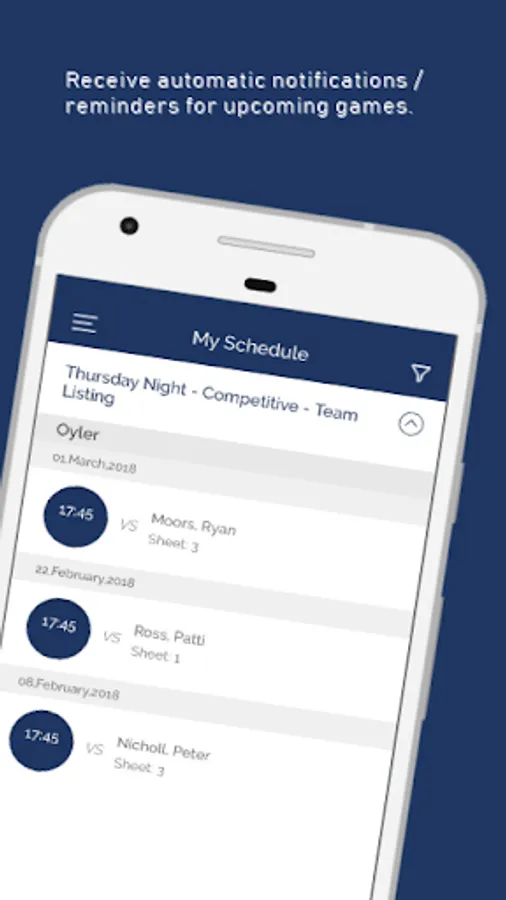 3. Log into the app using the same username/password that you use on your curling club's website.