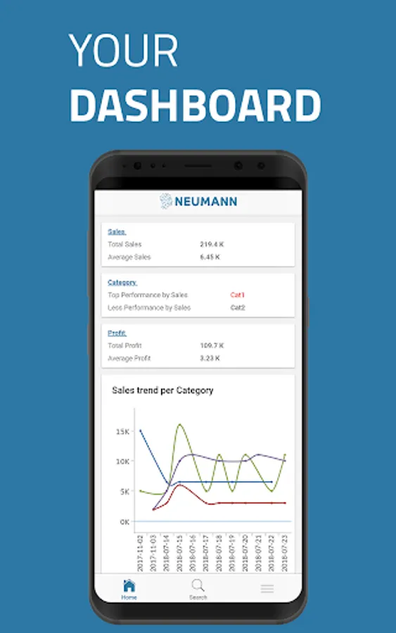 Intelligence on-the-go is key these days. Neumann Insights App empowers users to get real-time business analytics without any effort: be it online or offline users will always have access to their business operational and financial intelligence. Gone are the days when IT departments were loaded with requests for reports, thanks to Neumann Insights App users sync with the Neumann Insights Dashboard on the fly using the same account. Users can even search in the App for any KPIs they may think of. Once on a KPI chart, users can interact with the KPI's data using different controls and filters for a complete drill-downs eliminating the use of limited predefined single layer reports.