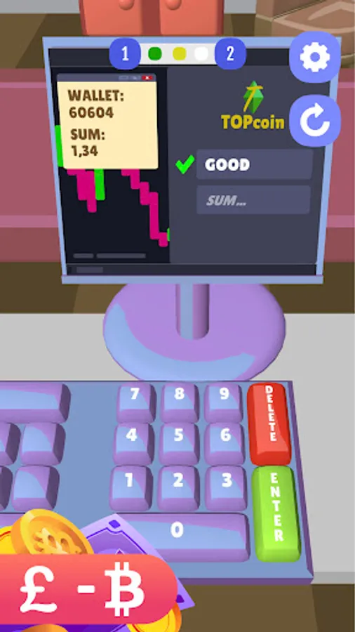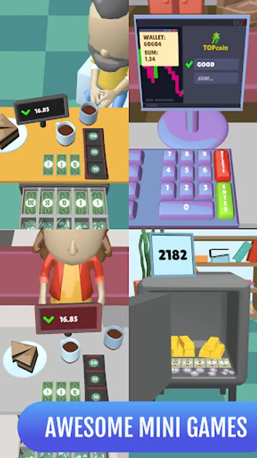 Try yourself as an employee of the Currency Exchanger. Exchange various money, pay by card, withdraw money from an ATM and in a safe.