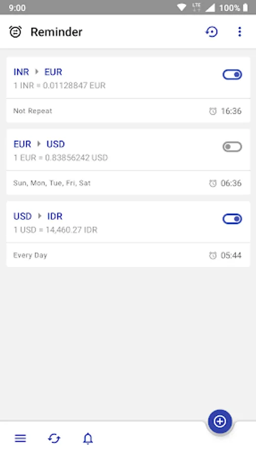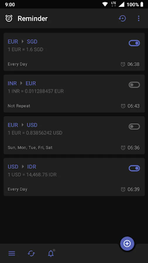 Currency Reminder is fast and lightweight currency converter app in the market. this app have two main feature, 1. reminder will notify user about currency rate based on set time, 2. live conversion allow user to convert currency in the go, its support multiple conversion.
