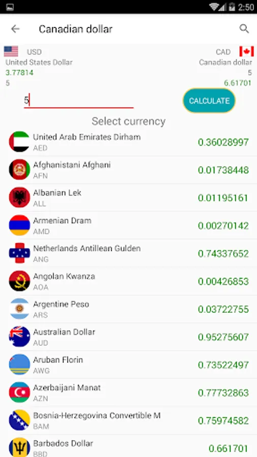 you can exchange from your currency Canadian dollar from and to more than 155 currency so easy