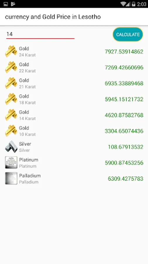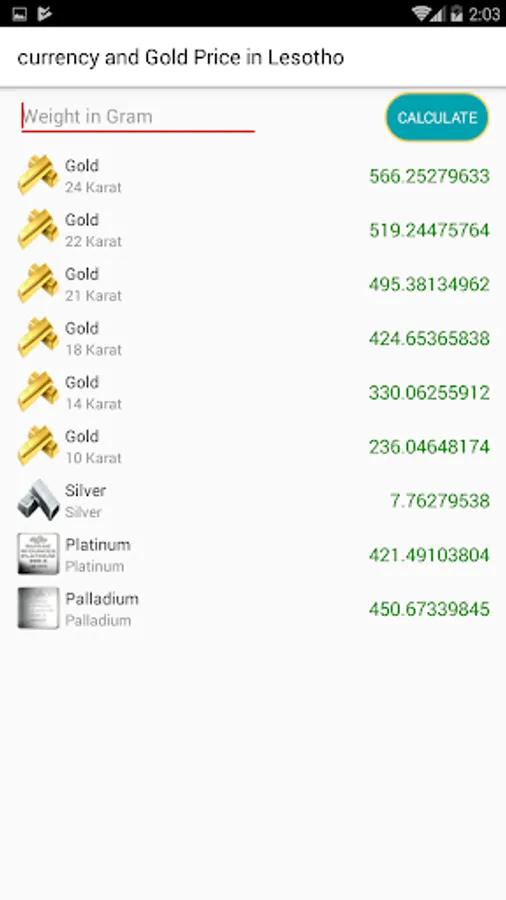 you can calculate gold and metal gram to Lesotho Loti in one click