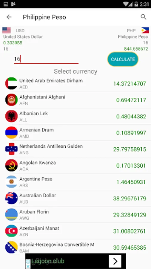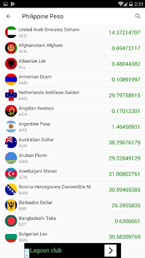 you can exchange from your currency Philippine Peso from and to more than 155 currency so easy
