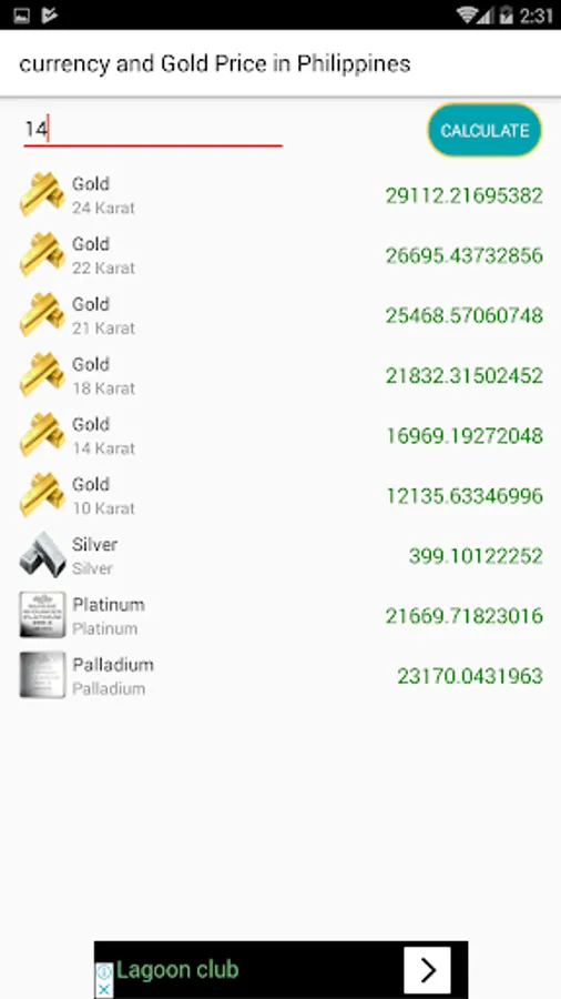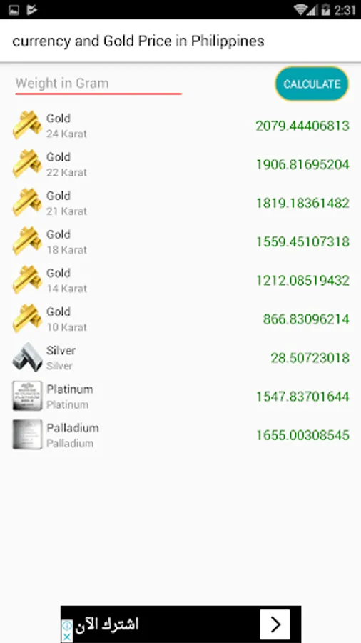 you can calculate gold and metal gram to Philippine Peso in one click