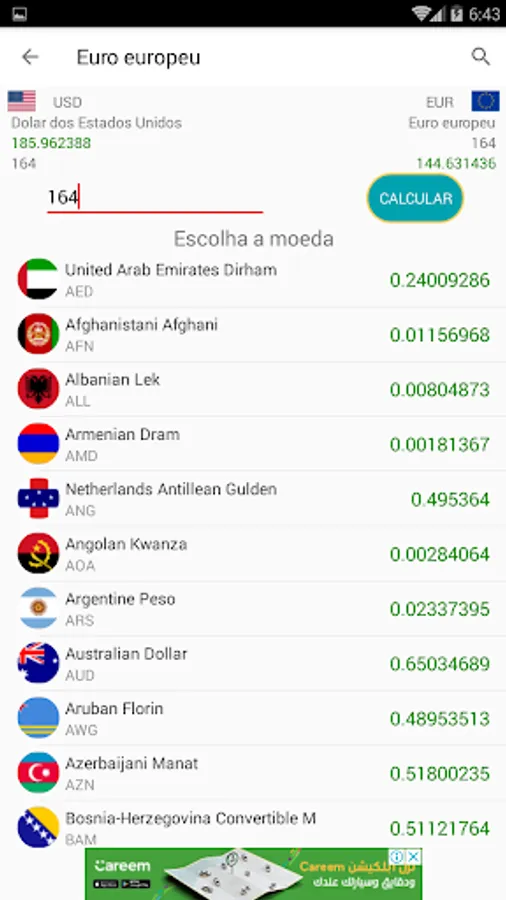 you can exchange your European Euro currency from and to over 155 currency so easy