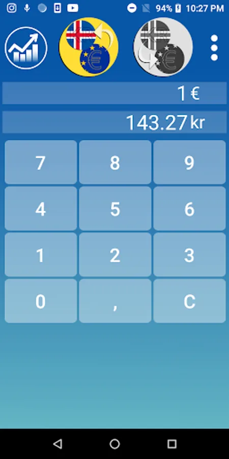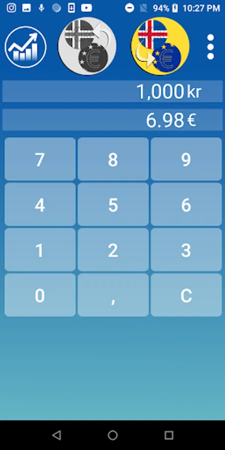Easy one click conversion. Very intuitive. No decimal errors when converting.
