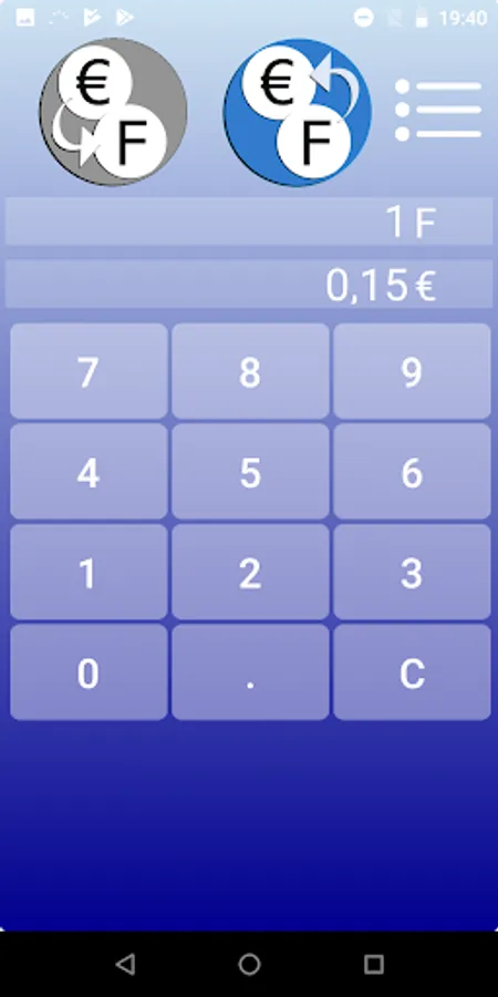 Easy one click conversion. Very intuitive. No decimal errors when converting.