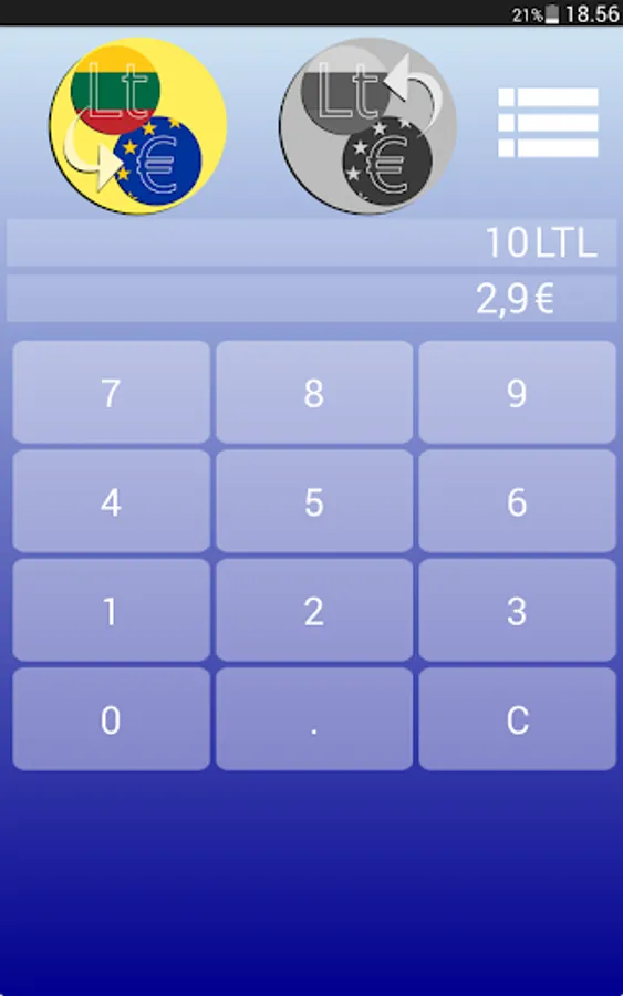 Easy one click conversion. Very intuitive. No decimal errors when converting.
