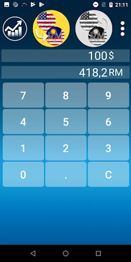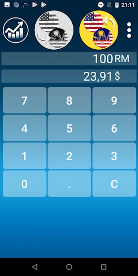 Easy one click conversion. Very intuitive. No decimal errors when converting.