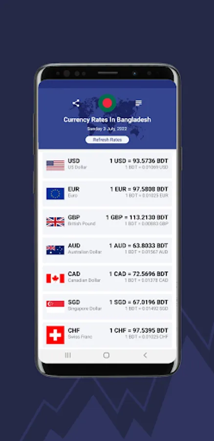 Displays the latest currency rates in Bangladeshi Takas(BDT).