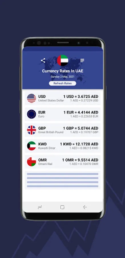 Displays the latest currency rates in Arab Emirates Dirham(AED).