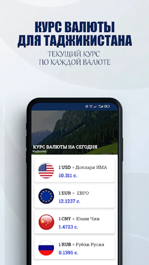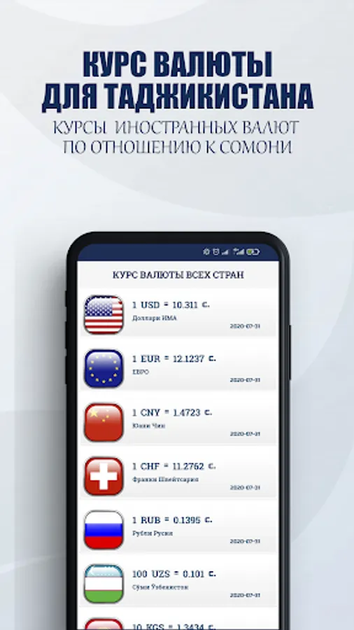 The application displays the latest data on the Somoni rate to currencies that are displayed in the application.