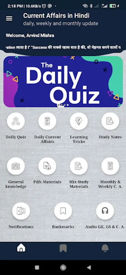 Daily Current Affairs in Hindi App is designed by GovExamTaiyari and the main focus of the app is to provide daily current affairs, daily current gk, weeky current affairs, weekly gk, daily gk, daily current affairs quiz.