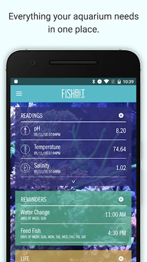 > Add your aquarium livestock into the app for insights
