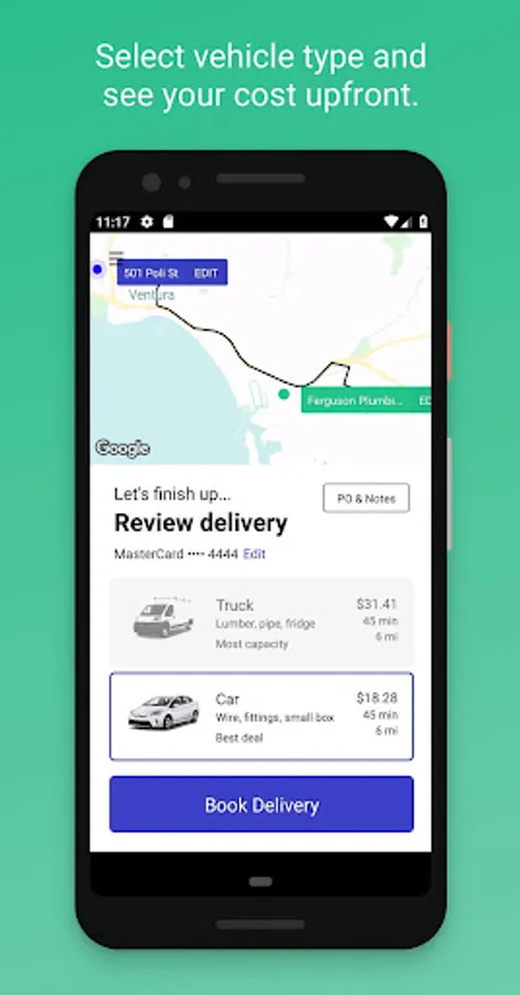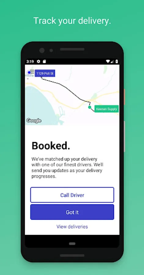 - Open the app and book a delivery. Get back to work. We’ll arrive shortly.