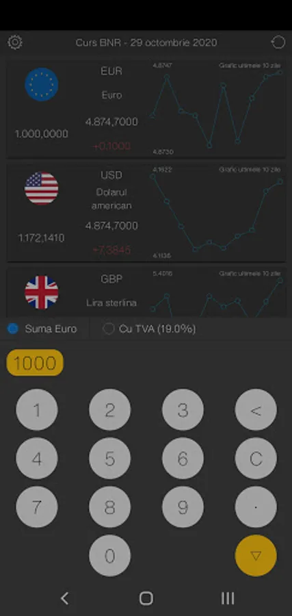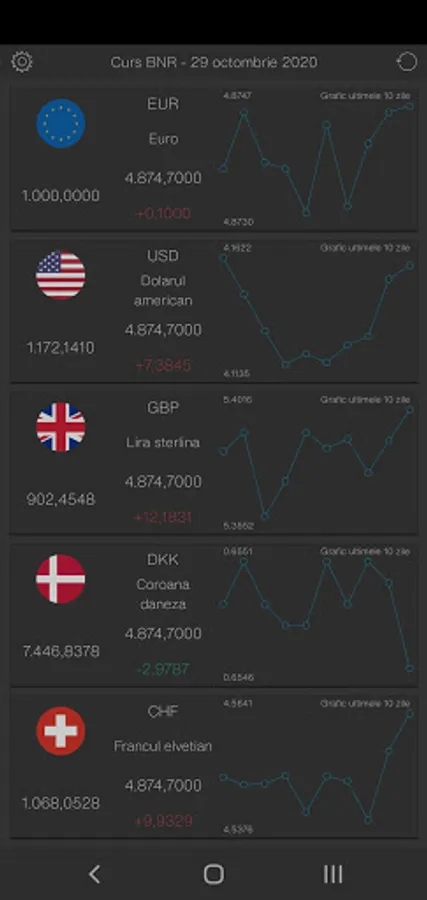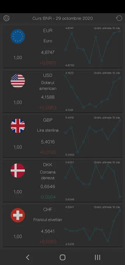 Curs BNR este o aplicatie gratuita cu ajutorul careia puteti prelua in timp real cotatiile valutare ale Bancii Nationale a Romaniei. Aplicatia are si functie de convertor valutar si poate afisa istoricul cursului valutar.