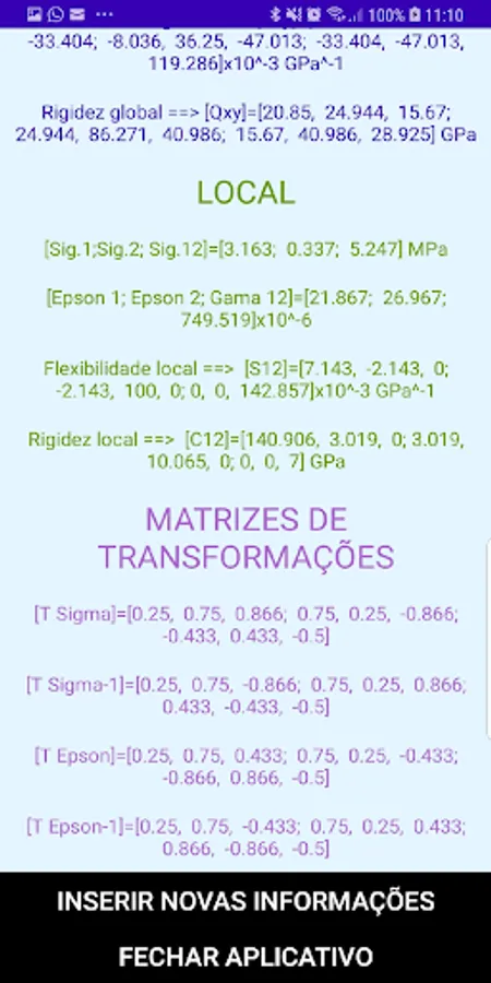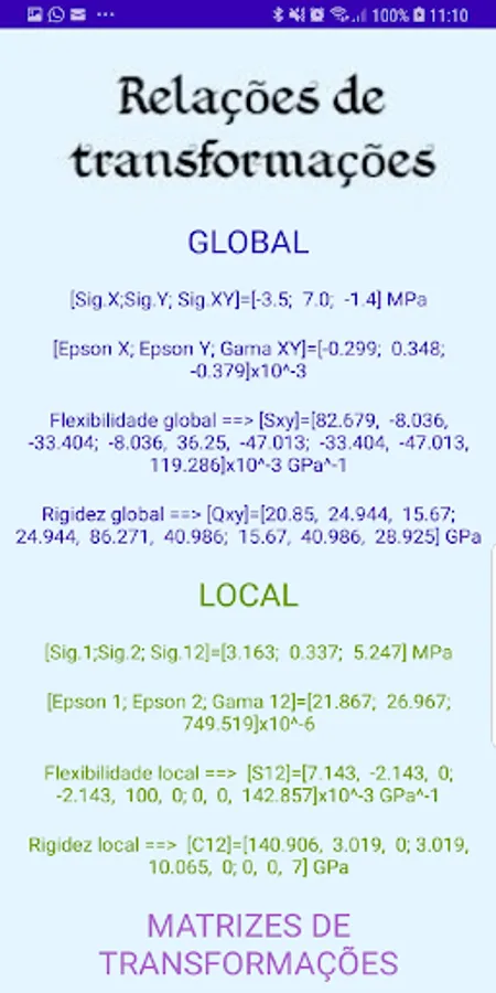 This application generates the stiffness and flexibility matrices both locally and globally, in addition to the transformation matrices.