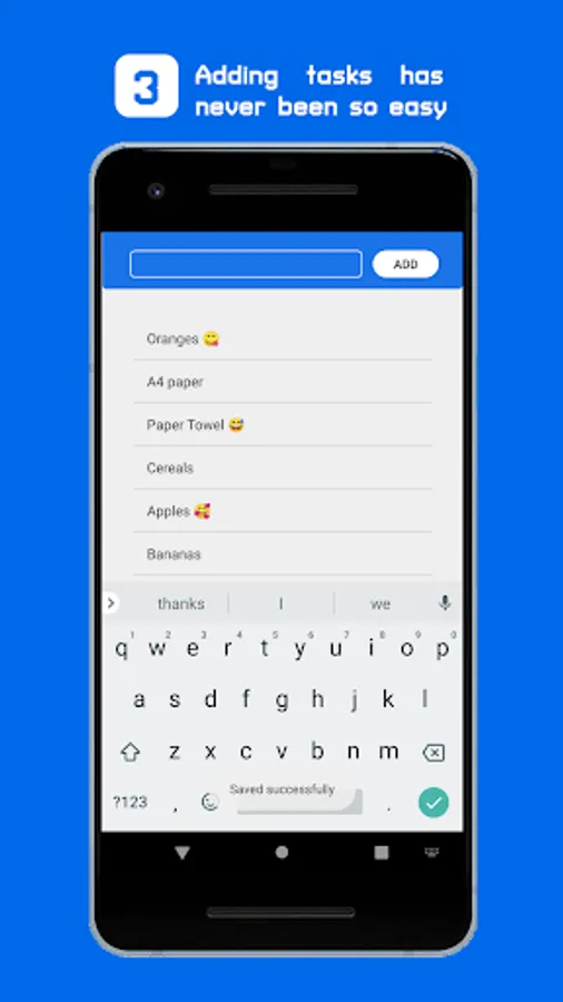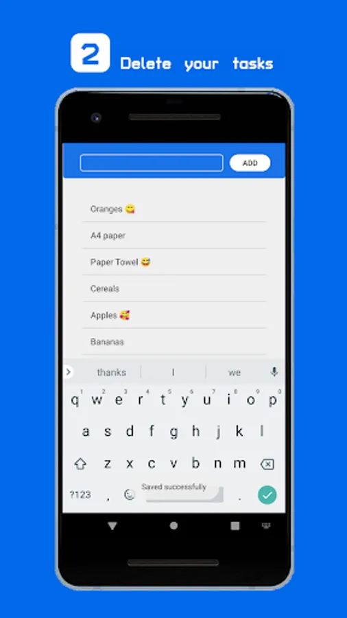 Ideal for making a shopping list! With just one touch it is possible to delete a written topic, and with another touch it is possible to add a new topic.