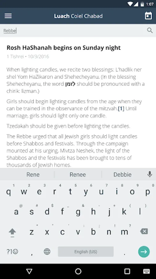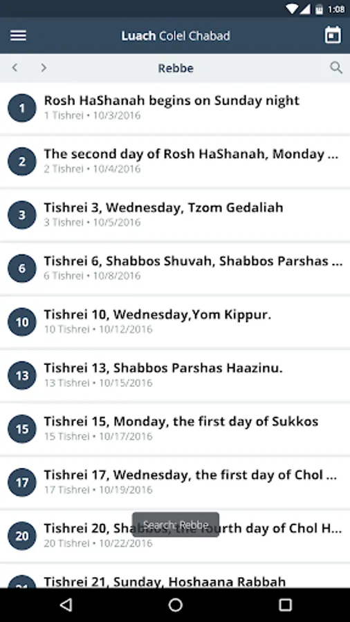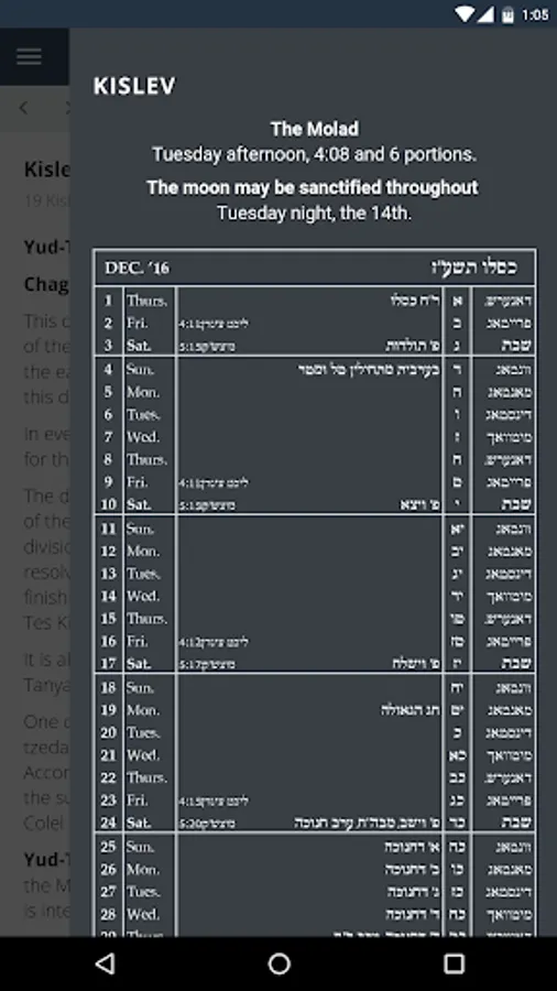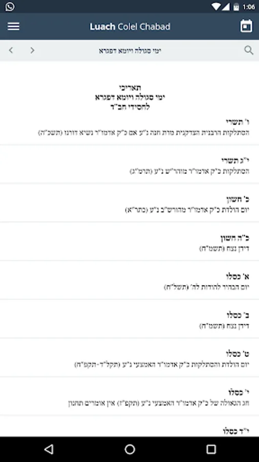 Luach Colel Chabad Screenshots
