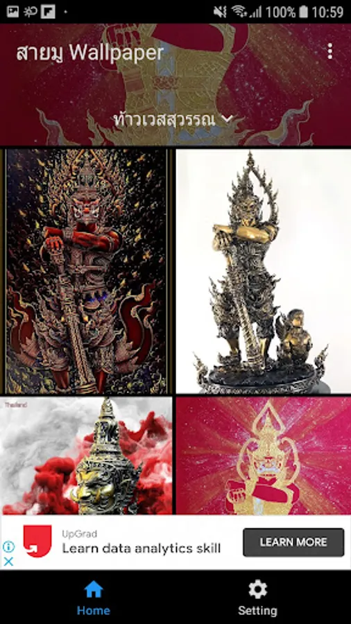 Saimu must not miss the Wallpaper app that has a selection of images. Lots of wallpapers such as Thao Wessuwan wallpapers, Ganesh wallpapers, Lakshmi wallpapers with beautiful and easy to use UI.