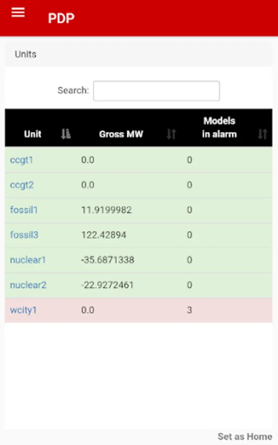• User can delve deeper into unit health by selecting a unit and view a table of all its models and their status, including the number of alarm for each model and how many have been acknowledged, and are being actively pursued.