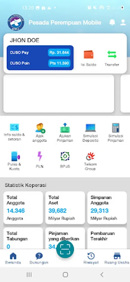 Pesada Perempuan Mobile is a mobile application with the concept of 'one stop solution' and a cooperative platform that relies on digital technology. As one of the service applications from PT. CUSO Digital Indonesia, CU Pesada Perempuan Mobile is intended for members of CU Pesada Perempuan to be able to carry out all Cooperative financial transaction activities, Information, Promotion, PPOB and Business Space (Marketplace) on the features provided by the application using an Android smartphone.