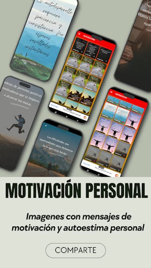 "Self-esteem Motivational Phrases" is more than a simple image application. It is an app full of people who are looking for positivity and motivation in their lives. Although the app does not allow image customization, we are constantly adding new phrases and images to make sure there is always something new and fresh to discover. 🆕🔝