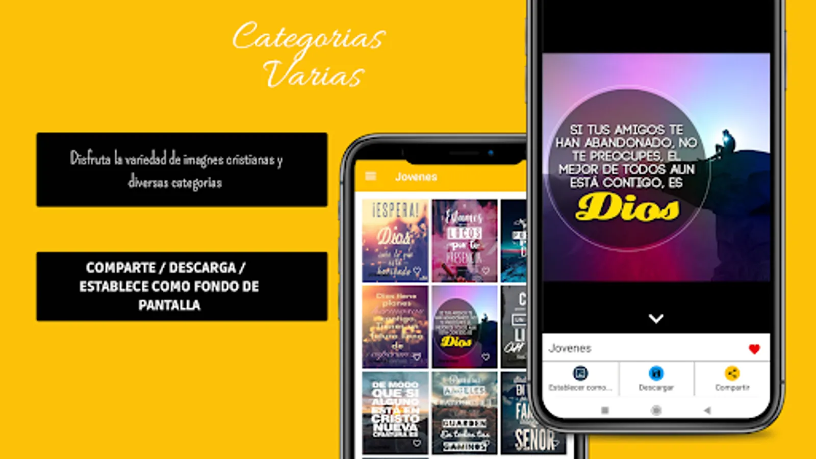 Christian Images with Phrases is an application with which you can See Images of Biblical Texts, Share Images with Christian phrases of Good Morning to Your Friends, Christian phrases or Reflections, Free God Phrases, Christian phrases of happy birthday. This application requires an internet connection.
