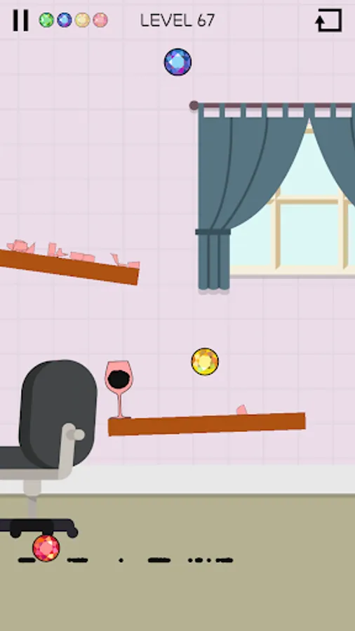Drop balls to knock over glasses and spill everything!