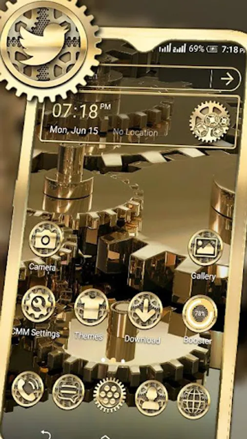 The Golden Machine Gear Launcher Theme lets you personalize your smartphone. Using this theme you will get custom designed icons, special wallpapers and other amazing visual elements that will completely change the way your phone looks. we are more than happy to present you Golden Machine Gear Theme!