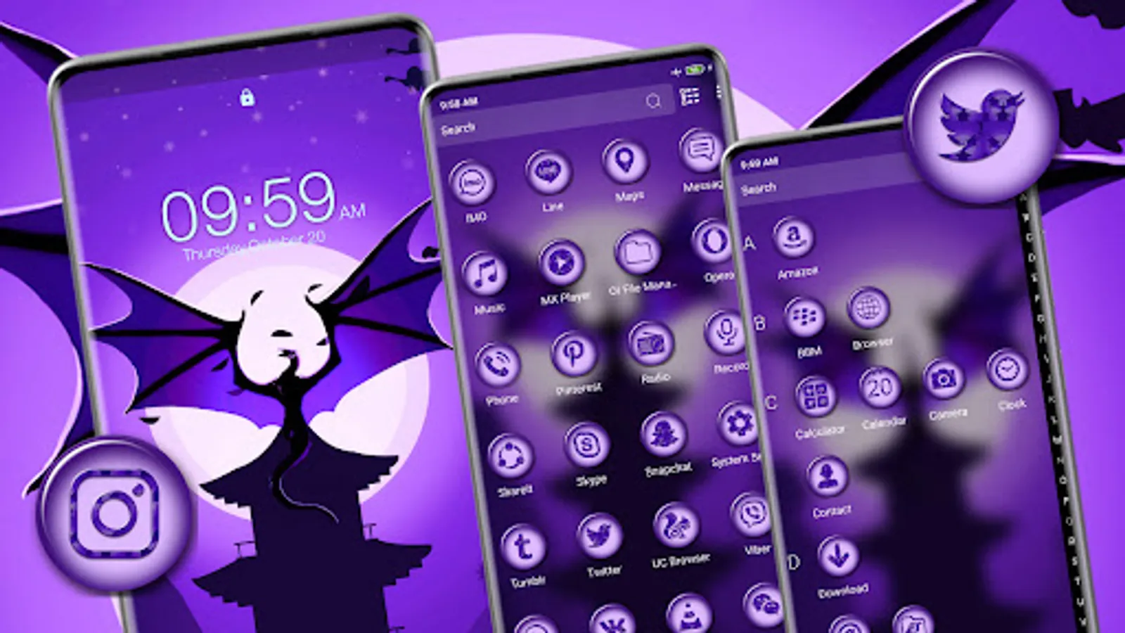 The Purple Bat Launcher Theme lets you personalize your smartphone. Using this theme you will get custom designed icons, special wallpapers and other amazing visual elements that will completely change the way your phone looks. we are more than happy to present you Purple Bat Theme!