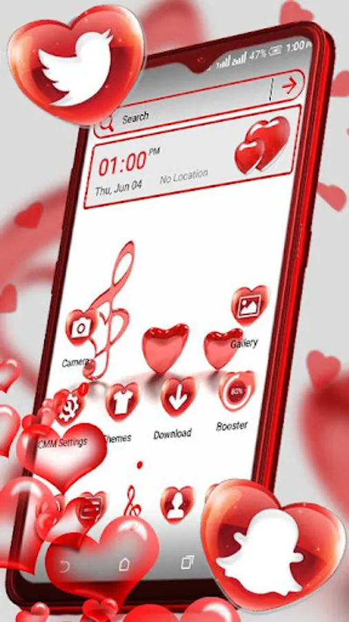 Trust us, one beautiful launcher theme will change the way you see phone customization! So, give you Android device the new stylish launcher to match your style! Download Red Glass Heart Launcher Theme! Tell your friends about this amazing Launcher theme!
