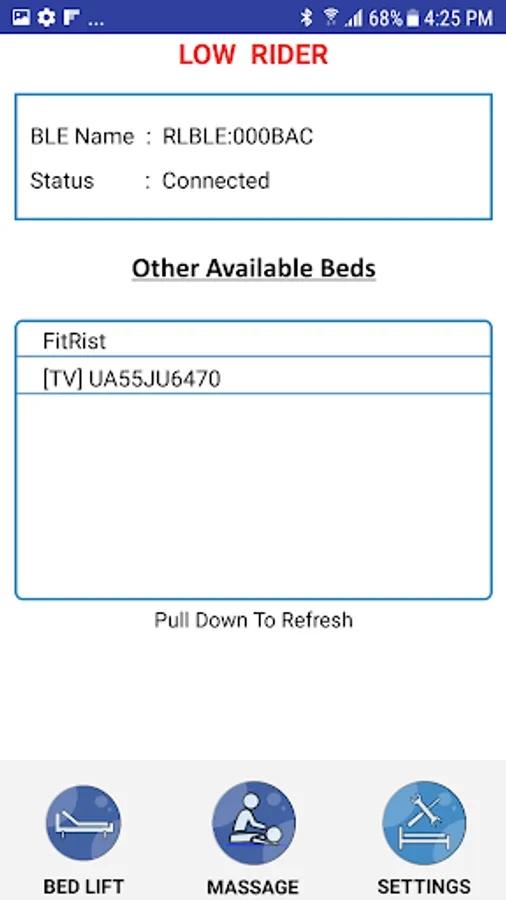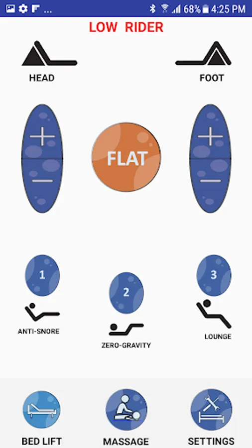 The Bob’s remote application is designed to seamlessly sync with your Low Rider Wireless Adjustable Base. With our easy setup, our app. will give you a new way to control your base. Using your smart device you can now control the (list features Head & foot up Function, Preset Memory Positions, LED, etc.) of your bed.