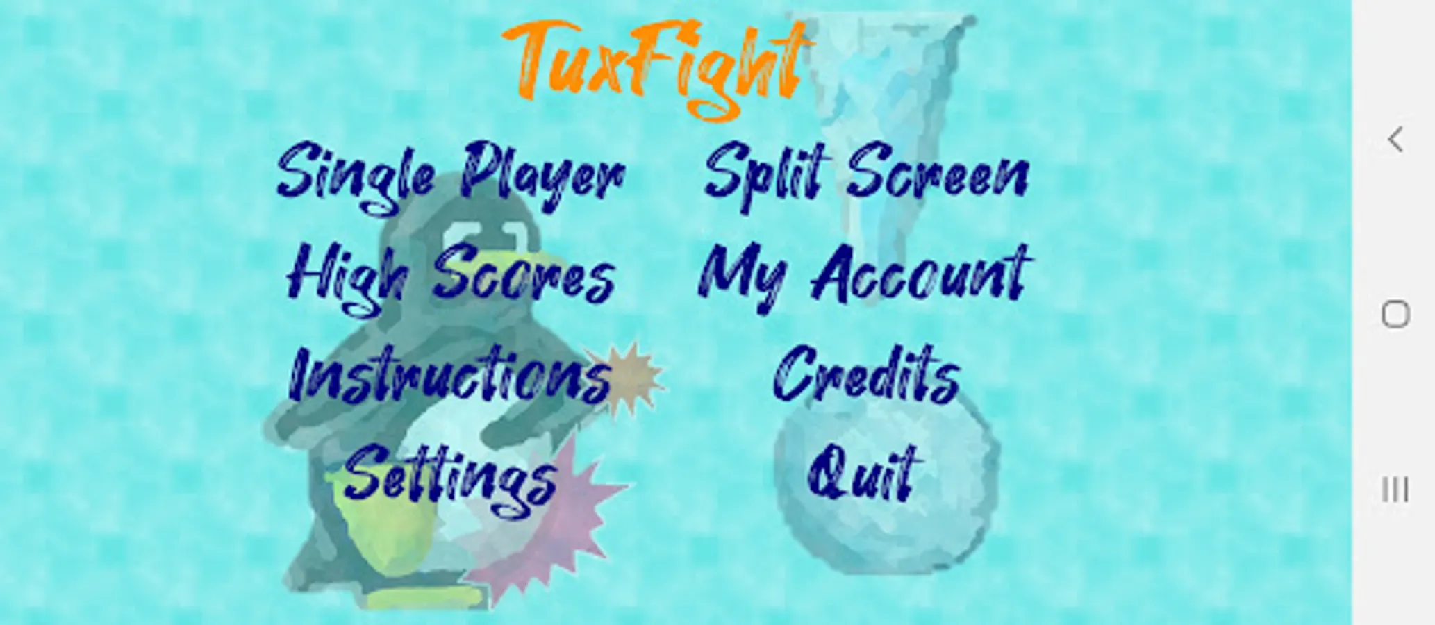 Battle it out with other Tuxes! Fight to dominate Antarctica and be the supreme penguin. You can choose to be Ice Tux, Fish Tux, Tech Tux and Fire Tux. Each of them has different abilities and powers. Control the players using a keyboard or the on-screen controls. There is even a split screen mode so you can play with another person at the same time, using on-screen controls at opposite ends of your phone!